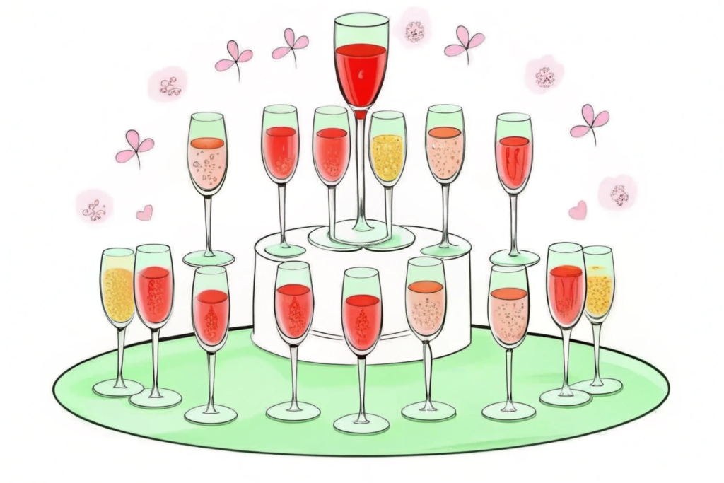 Il est également judicieux de prévoir un peu plus si vous comptez servir du champagne tout au long de la journée, notamment lors du vin d’honneur, du repas, et du dessert. Mieux vaut en avoir un peu trop que pas assez – un surplus pourra toujours être consommé plus tard ou offert à vos invités en souvenir.