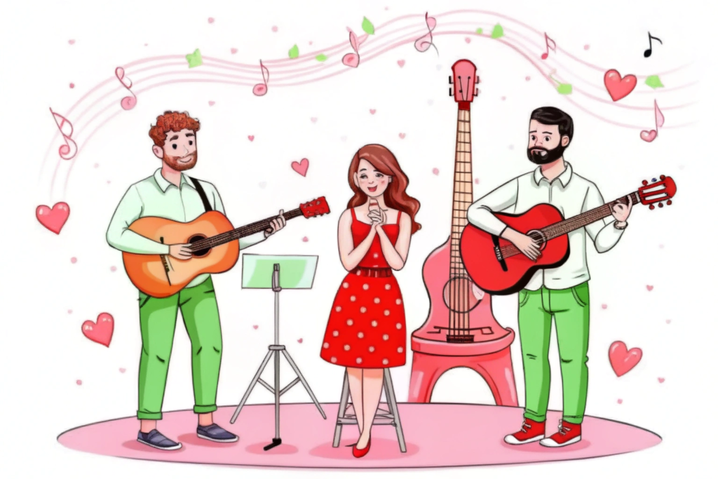 Pour l’ambiance musicale, rien ne vaut un groupe acoustique jouant des chansons françaises intemporelles. Si vous préférez une ambiance plus dynamique en soirée, un DJ pourra reprendre les grands classiques de la chanson française tout en apportant sa touche personnelle.