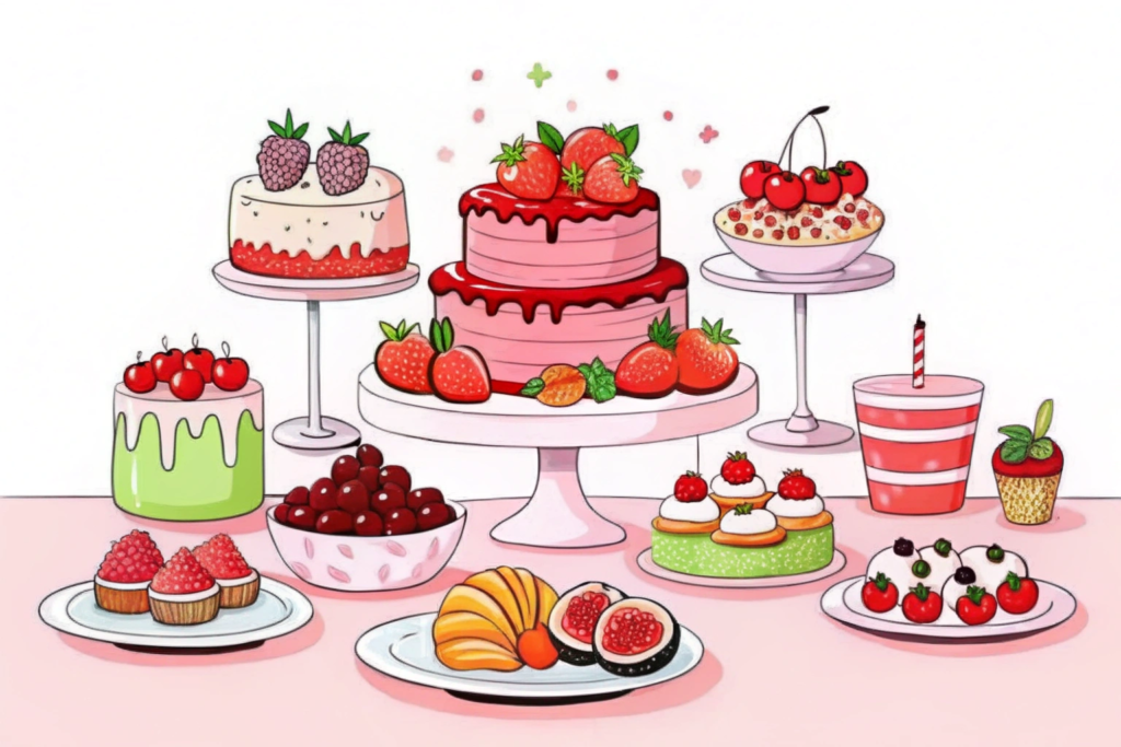 Les gâteaux de mariage traditionnels sont parfois remplacés par des alternatives plus originales : bar à desserts, pyramides de macarons, gâteaux de fromages, ou encore des desserts aux fruits frais de saison comme des fraises de Provence ou des pêches du Languedoc.