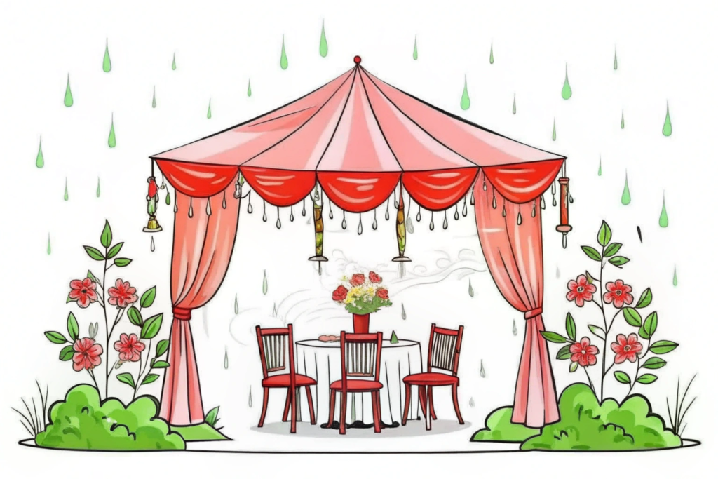 Prévoyez des tentes ou des chapiteaux pour vous protéger, vous et vos invités, en cas de pluie. Ces structures peuvent être élégantes et offrir un refuge tout en maintenant l’ambiance festive. Assurez-vous de choisir un modèle qui correspond à votre thème et à l’esthétique de votre mariage.